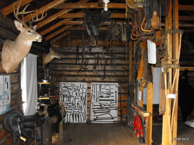 This cabin was donated by Art Anderson and became our first museum. Hugo and Art Anderson acquired registered traplines on the James River in the Forest Reserve southwest of their home in 1933. They operated these lines every winter until the spring of 1943. In recognition of their trapping days furs have been placed in the cabin.